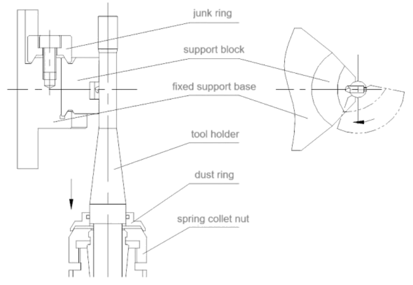 ● Structura de susținere a tăietorului de zbor se bazează pe caracteristicile aceluiași tip de mașini-unelte din Italia. Blocul de asistență este susținut de o suprafață ARC, care are un efect de sprijin bun; Arborul tăietorului este fixat cu o piuliță de arc; În același timp, în partea de sus a arborului tăietor este utilizat un vârf mobil pentru a îmbunătăți rigiditatea și precizia de susținere a arborului tăietor. Tăierea cu muscă are o structură rezonabilă, oferindu-i o rigiditate ridicată și o precizie ridicată.